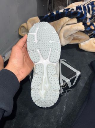 Zapatilla deportiva con un diseño moderno y llamativo. Totalmente nuevas - Combinación de colores plata y blanco. - Detalles de flechas en los laterales. - Suela con relieve para mayor agarre.