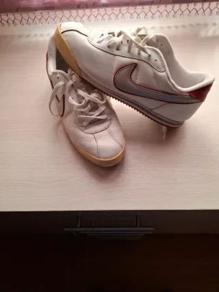 Zapatillas deportivas Nike con un diseño clásico y detalles en rojo. - Parte superior de cuero sintético. - Suela de goma. - Cierre con cordones.