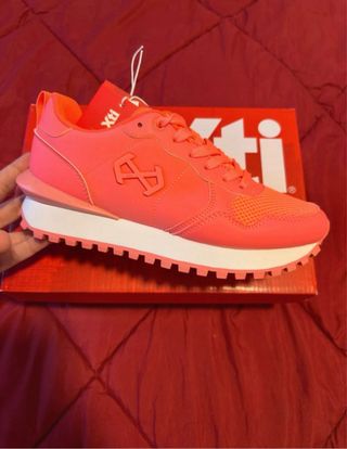 Zapatillas deportivas Xti en tono coral fosforito. Perfectas para el día a día. - Diseño moderno y cómodo. - Suela de goma y plantilla ergonómica. - Cierre con cordones. - Nunca usadas. - Con etiquetas y caja.