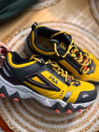 Zapatillas deportivas Fila con un llamativo diseño. - Combinación de colores amarillo y negro. - Cordones a contraste. - Logo de la marca visible.