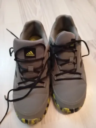 Zapatillas deportivas Adidas Terrex en talla 35.5, casi nuevas. - Diseño en color gris con detalles multicolor en la suela. - Cierre con cordones negros. - Logo de Adidas visible en la lengüeta.