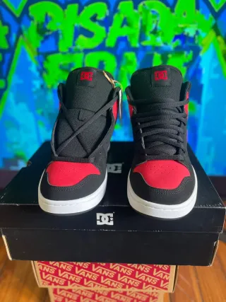Zapatillas altas de la marca DC Shoes.@pisada_firme04 - Combinación de colores negro y rojo. - Diseño deportivo y urbano.