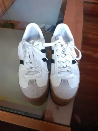 Zapatilla de estilo retro de la marca Mustang. Dos puestas, me cogí un número de más y me quedan grandes - Diseño deportivo. - Combinación de colores beige y marrón. - Talla 39.