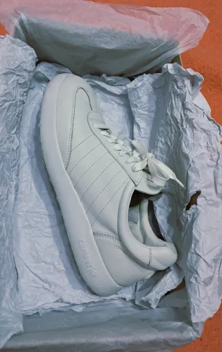 Zapatillas deportivas de Calvin Klein en talla 39. Combinan tonos beige y blanco para un look moderno. - Diseño deportivo. - Cierre con cordones. Plantillas nuevas Muy cuidadas , cubierta de piel Precio en tienda 160€