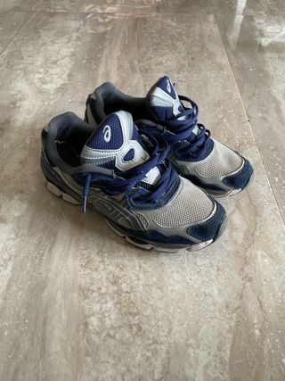 Zapatillas deportivas Asics Gel NYC en tonos azules y grises. - Diseño deportivo. - Cordones azules. - Detalle del logo Asics en los laterales.