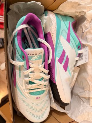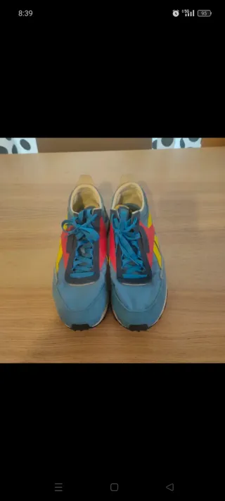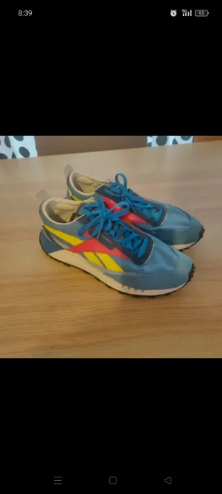 Zapatillas deportivas Reebok para hombre con un diseño vibrante y moderno. - Combinación de colores llamativa. - Cordones azules. - Suela de goma negra.El precio es negociable siempre y cuando la oferta sea razonable,todas las prendas son originales no me dedico a vender réplicas de marcas si así fuera también lo diría sin ningún problema.