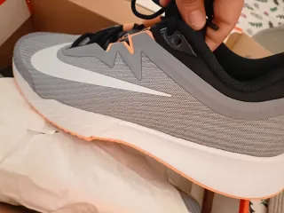 Zapatillas deportivas Nike original con un diseño moderno y llamativo. Se ha puesto una vez casi nueva me ha venido apretada un poco - Parte superior de malla transpirable. - Detalle de amortiguación visible en la suela. - Combinación de colores gris y rosa vibrante. De nike originales