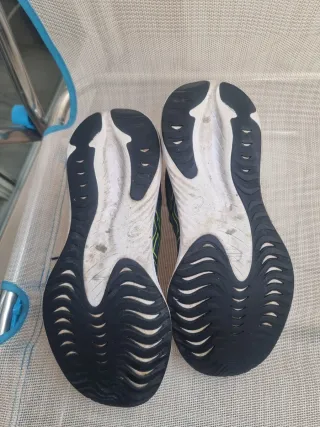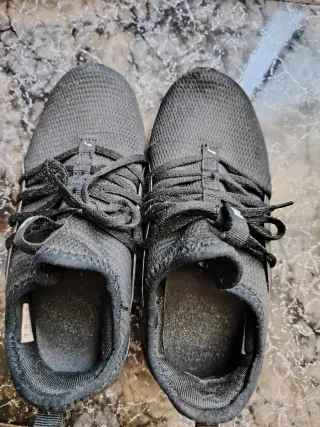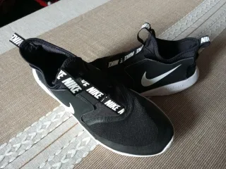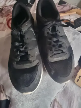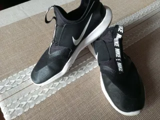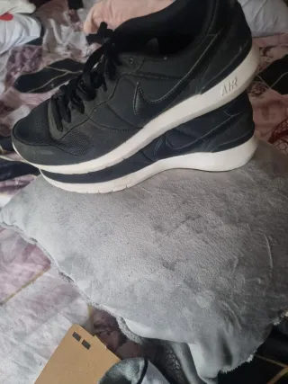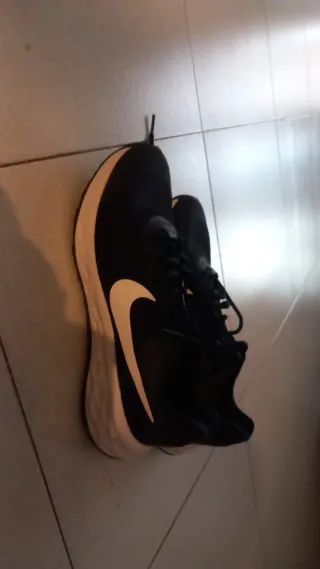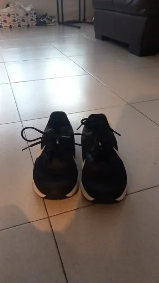 Zapatillas deportivas Nike, la ultima vez que corri fue hace 3 o 4 años, tiene marcas de uso en las suelas. - Diseño moderno en color negro con detalles blancos. - Cierre sin cordones para mayor comodidad. - Suela blanca para amortiguación.