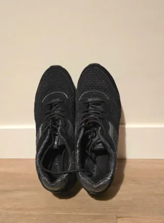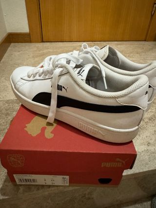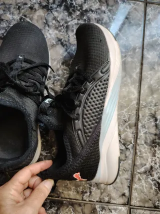 Zapatillas deportivas Puma en color negro y talla 38. - Diseño moderno y cómodo. - Cierre con cordones. - Suela flexible. Estan con muy poco uso ya q me vienen grandes pues uso un 37. No están bastante usadas como pongo en la descripción pero no me parecía correcto poner como nuevas aunque se asemeja más.