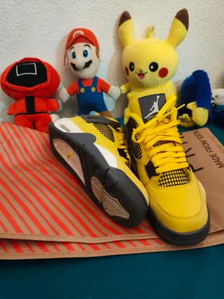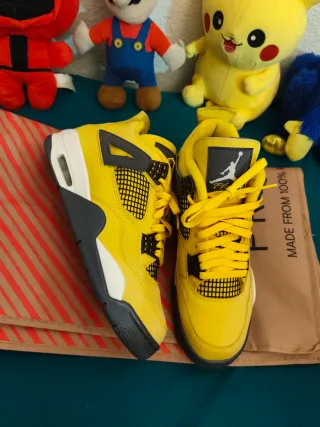 Zapatillas deportivas Jordan 4 en llamativo color amarillo en perfecto estado 8/10. Sin caja original, pero se envia en otra caja. 100% auténticas, y envio rápido - Diseño icónico. - Detalles en gris y negro. - Malla transpirable.