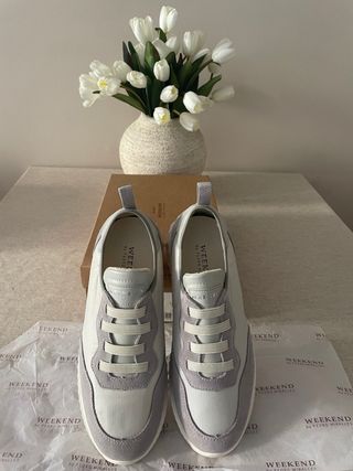 Zapatillas deportivas/ bambas de la marca Weekend by Pedro Miralles en color gris y blanco. Perfectas para el día a día. Cierre elástico con Cordones. Suela de goma blanca. Nueva con caja. precio en tienda 129€