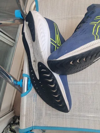 Zapatillas deportivas Asics con suela de goma. - Diseño con detalles en verde. - Suela exterior con patrón de agarre.