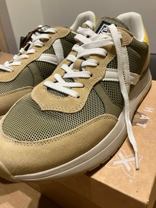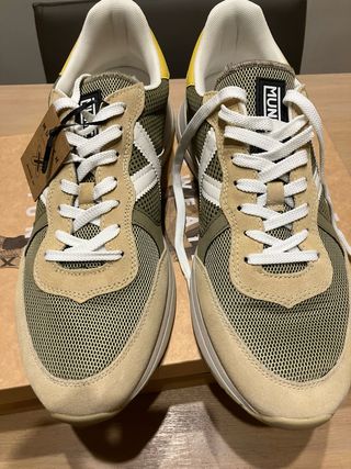 Zapatillas deportivas Munich sin estrenar. - Diseño moderno en tonos beige y verde. - Cierre con cordones blancos. - Detalle de logo en la lengüeta.