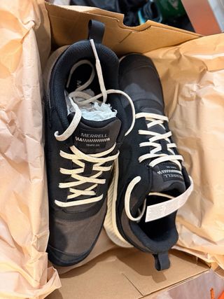 Zapatillas Merrell para hombre en tonos negro y marrón. Diseñadas para ofrecer comodidad y estilo. - Cierre con cordones. - Detalle de logo en la lengüeta. - Suela de goma.