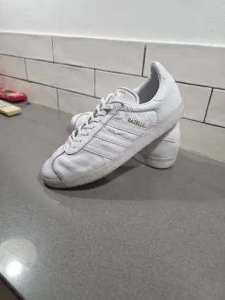 Zapatillas deportivas Adidas Gazelle en color blanco. Un clásico atemporal para tu día a día. - Diseño icónico de tres rayas. - Detalle del nombre 'Gazelle' en el lateral.