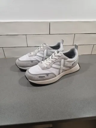 Zapatillas deportivas Munich en perfecto estado, casi nuevas. - Diseño moderno en tonos beige y azul. - Talla 46.
