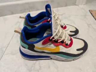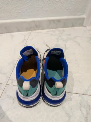 Zapatillas deportivas Nike Air Max 270 React con un diseño llamativo y moderno. - Combinación de colores vibrantes. - Suela con tecnología React para mayor comodidad. - Estilo deportivo y casual.