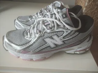 Zapatillas deportivas New Balance con un diseño moderno y llamativo. - Combinación de colores plateado y rosa. - Materiales de malla transpirable.