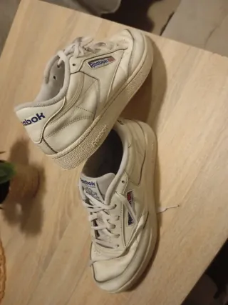 Zapatillas deportivas Reebok de estilo clásico. - Color blanco y beige. - Talla 42.5.