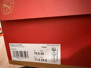 Nuevas a estrenar Zapatillas deportivas Puma Pounce Lite PTX en color negro y blanco. Modelo para adultos. - Talla UK 10.5 - Talla EUR 45 - Talla US 11.5 - Medida CM 29.5 - Fabricadas en Vietnam