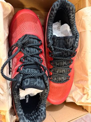 Nuevas a estrenar Zapatillas deportivas Merrell en llamativos tonos rojos y negros. - Diseño moderno con cordones. - Detalle de estampado en el cuello y cordones. - Logo de la marca en la plantilla.