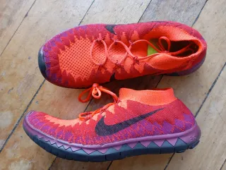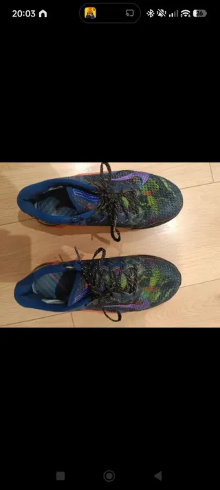 Zapatillas deportivas Nike con un diseño vibrante y moderno. - Tejido de punto transpirable. - Cordones para un ajuste seguro. - Suela flexible para mayor comodidad. -Super ligeras - Están muy nuevas, pero tienen desgastada la parte de atrás. Hay foto.