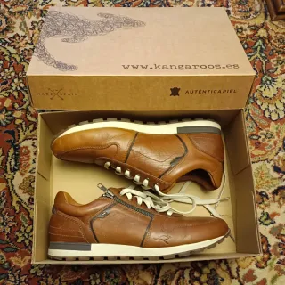 Sneakers deportivas de la marca Kangaroos para hombre, apenas usadas. Es una 42, pero puede usarla perfectamente alguien que calce la 42'5. Ligeros desperfectos por rozaduras. Ver las últimas imágenes. - Fabricadas en España en piel auténtica. - Diseño moderno con detalles en contraste. - Cordones nuevos a juego con la suela y cremallera lateral. - Suela de goma resistente.
