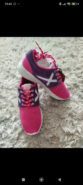 Zapatillas deportivas Munich en color rosa y morado. Perfectas para el día a día. - Diseño moderno y llamativo. - Cierre con cordones. - Suela blanca con detalles. - Nuevas con etiqueta - Entrego en mano no me desplazo podría valorar si envío