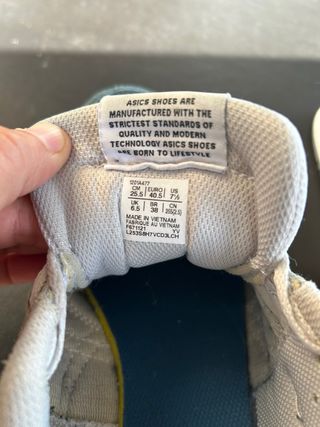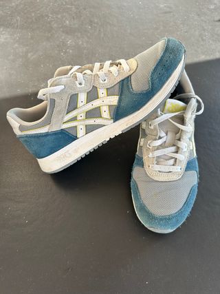 Zapatillas Asics Lyte Classic en tonos azules y grises. - Diseño deportivo. - Combinación de malla y ante. - Cordones blancos. Son súper cómodas, pero a mi me quedan justas.