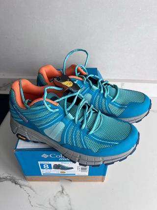 Zapatillas de trail running Columbia para mujer. - Color azul y naranja. - Suela Vibram. - Modelo Mojave Trail. - Talla EUR 39.