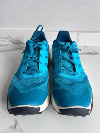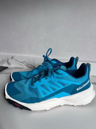 Zapatillas deportivas Salomon en tonos azules y verde azulado. - Diseño deportivo. - Cordones. - Suela Contagrip.