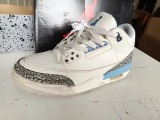 Zapatillas deportivas Jordan. - Color blanco y azul. - Talla 42. - En buen estado, solo presenta ligeros signos de desgaste en la suela.