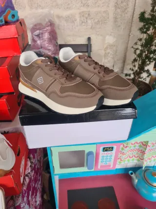 Zapatillas deportivas con un diseño moderno y cómodo. - Combinación de tonos marrones y detalles blancos. - Materiales de calidad para mayor durabilidad. - Suela de goma para un buen agarre.