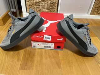 Zapatillas deportivas Puma para hombre en talla 44. Combinan un diseño moderno con detalles en gris y negro. - Parte superior de ante y material sintético. - Franja característica de Puma en contraste. - Suela de goma duradera.