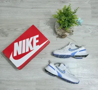 Zapatillas deportivas Nike Air Max ZM950 en blanco y azul. Diseño moderno y cómodo. - Parte superior de malla transpirable. - Detalle de Swoosh en azul. - Suela con amortiguación. - Cierre de cordones.
