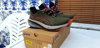 Zapatillas deportivas Asics Gel-Nimbus 26 TR en color verde y naranja. Diseñadas para ofrecer comodidad y rendimiento. - Modelo: GEL-NIMBUS 26 TR - Código: 1078849-300 - Color: NATURE BATHING/RED SNAPPER - Talla EUR: 42.5 - Talla UK: 8 - Talla US: 9 - Talla CM: 27.0 Están como nuevas. Me costaron 150€. Se pueden entregar en mano.