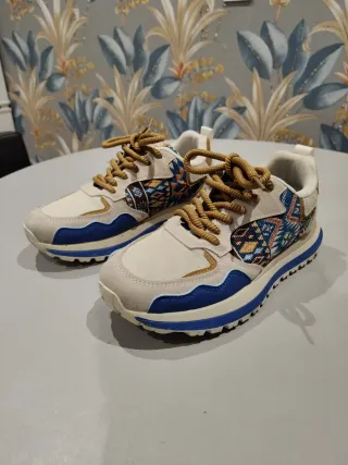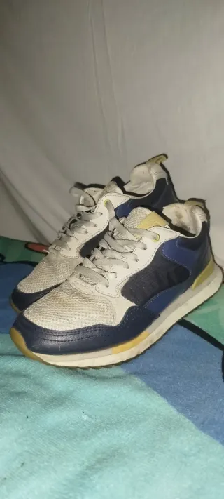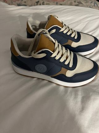 Zapatillas deportivas beige y azul