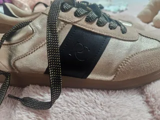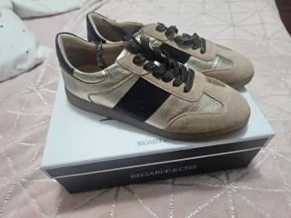 Zapatillas deportivas de la marca Regarde le ciel con un diseño moderno y elegante. - Combinación de colores dorado y negro. - Cierre con cordones. - Detalle de banda lateral.usadas 10 mi..
