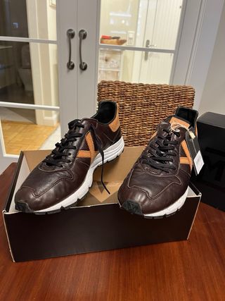 Zapatillas Munich de cuero en tonos marrones y detalles en beige. - Diseño deportivo. - Cierre con cordones. - Suela de goma.