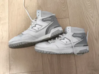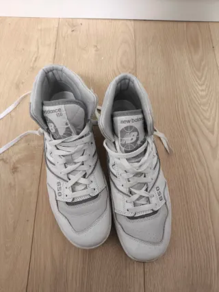 Zapatillas altas de la marca New Balance en color blanco y gris. Modelo 650. - Diseño deportivo. - Cierre con cordones. - Detalle de logo en el lateral.