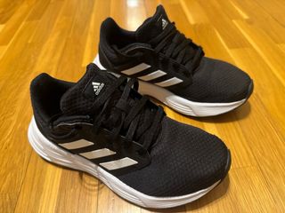 Zapatillas deportivas Adidas Galaxy 6, ideales para running. Muy buen estado. Talla 37 1/3. De mujer pero podrían ser unisex. - Diseño en color negro con detalles blancos. - Cierre de cordones. - Suela blanca Cloufoam.