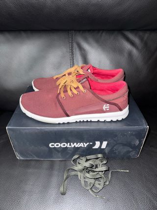 Zapatillas Etnies modelo Scout en color burdeos/vino con cordones en contraste. Es un calzado extremadamente ligero y cómodo gracias a su suela STI Evolution. • Estado general: Muy bueno, • Detalle importante: Tienen un pequeño roce/agujero en la puntera de la zapatilla derecha. Es solo en la primera capa de tela, la zapatilla tiene varias capas internas por lo que no traspasa ni afecta al uso, es meramente estético. • Uso: Muy poco uso, un par de veces. Acepto ofertas #Etnies #vans #nike #zapatillas #skate #urban #man #woman #style #Etnies #EtniesScout #Talla44 #ZapatillasHombre #SkateStyle #SneakersBurdeos #CalzadoGimnasio #Como