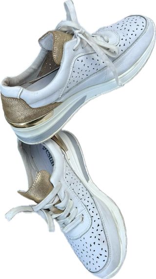 Zapatilla deportiva con cordones para mujer En buen estado Talla 40 Blanco / dorado