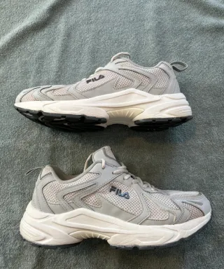 Zapatillas deportivas Fila Heroic en tonos grises y blancos. Un calzado cómodo y con un diseño moderno. - Parte superior de malla transpirable. - Suela de goma para mayor agarre. - Cierre de cordones. Parecidas a las nb 530. Las vendo sin plantillas por higiene.