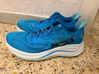 Hoka Clifton 9. Zapatilla muy cómoda y polivalente. Muy usada para caminar pero aprovechable todavía ya que no ha sufrido desgaste puesto que solo se ha usado a diario.