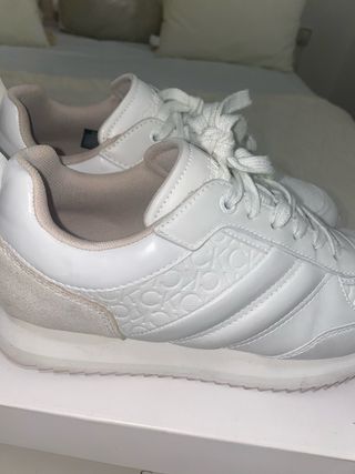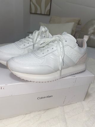Zapatillas deportivas de la marca Calvin Klein en color blanco. Presentan un diseño moderno y cómodo. - Detalle de logo CK repetido en los laterales. - Suela de goma. - Cierre con cordones.