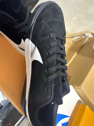Zapatillas deportivas Nike de ante negro con detalles blancos. - Diseño bajo. - Swoosh blanco lateral. - Cordones negros.