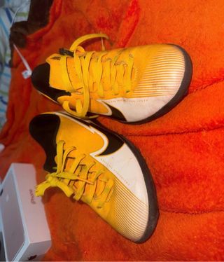 Zapatillas de fútbol para niño. - Diseño en color amarillo y blanco. - Marca Nike. - Talla 33 En buen estado. ENVIO 24/48H NO ACEPTO DEVOLUCIONES