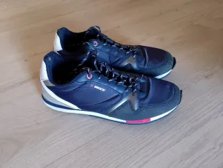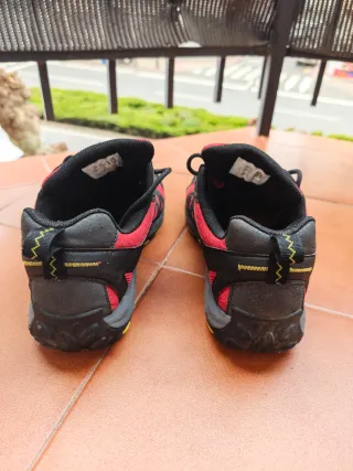 Zapatillas deportivas con un diseño moderno y llamativo. Pone talla 42 pero vale para una 40. - Parte superior de malla transpirable. - Cordones negros para un ajuste seguro. - Suela de goma para mayor tracción.