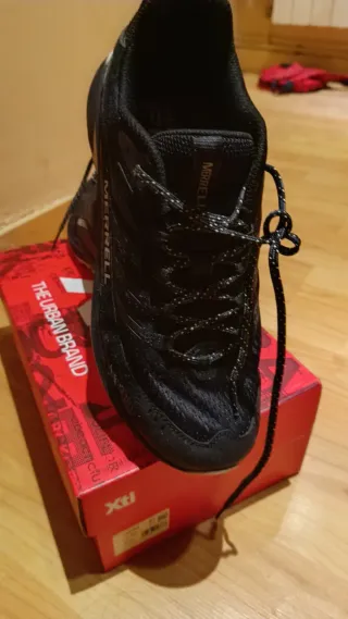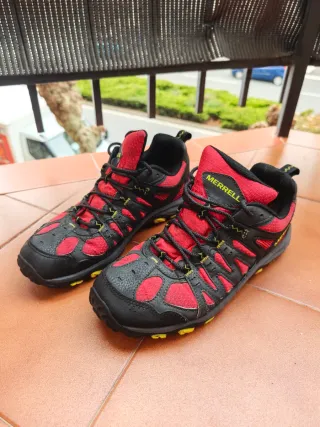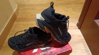 Zapatillas Merrell con un diseño moderno y funcional. - Combinación de colores negro y beige. - Suela con tecnología Vibram. Usadas 2 semanas